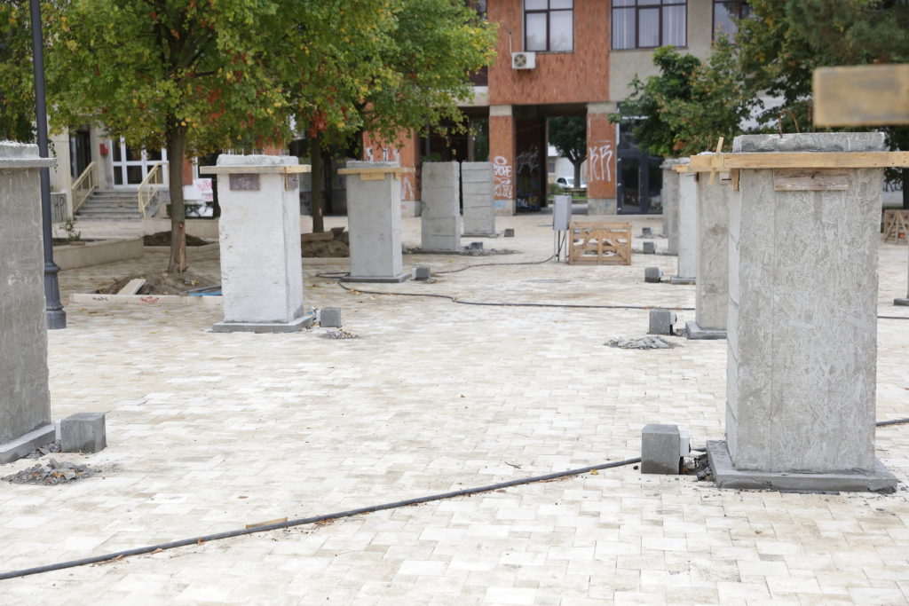 Recent, angajaţii aceleiaşi Regii au turnat soclurile pentru statui. Lucrările merg în paralel cu amenajarea pavimentului şi spaţiilor verzi din piaţeta mărginită de blocuri. Statuile vor fi aşezate pe mai multe rânduri paralele.
