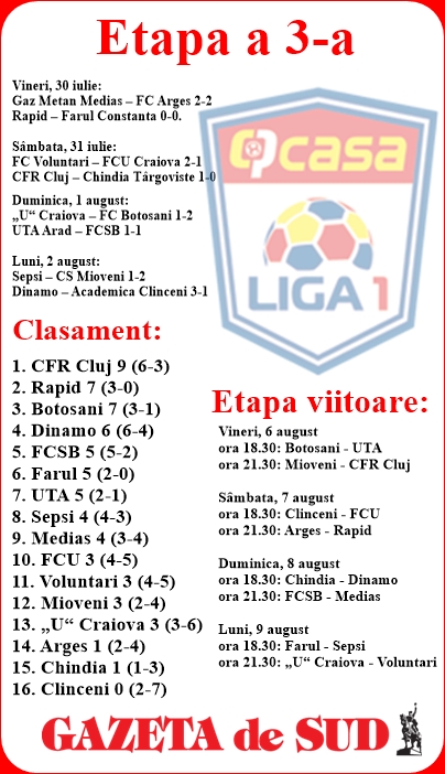Înfrângerile suferite weekendul trecut de cele două reprezentante ale Băniei din Liga 1, Universitatea Craiova şi FCU, au condus la absenţa jucătorilor acestora din echipa etapei a 3-a, prezentată astăzi de LPF. Reamintim că în runda inaugurală a sezonului 2021-2022 au „strălucit“ Mihai Bălaşa şi George Câmpanu, de la Universitatea Craiova. În cea de-a doua impresionase Juan Bauza, după pasa decisivă, cu exteriorul, la golul lui Vieira, care a adus victoria cu Dinamo. Acum, nimic!