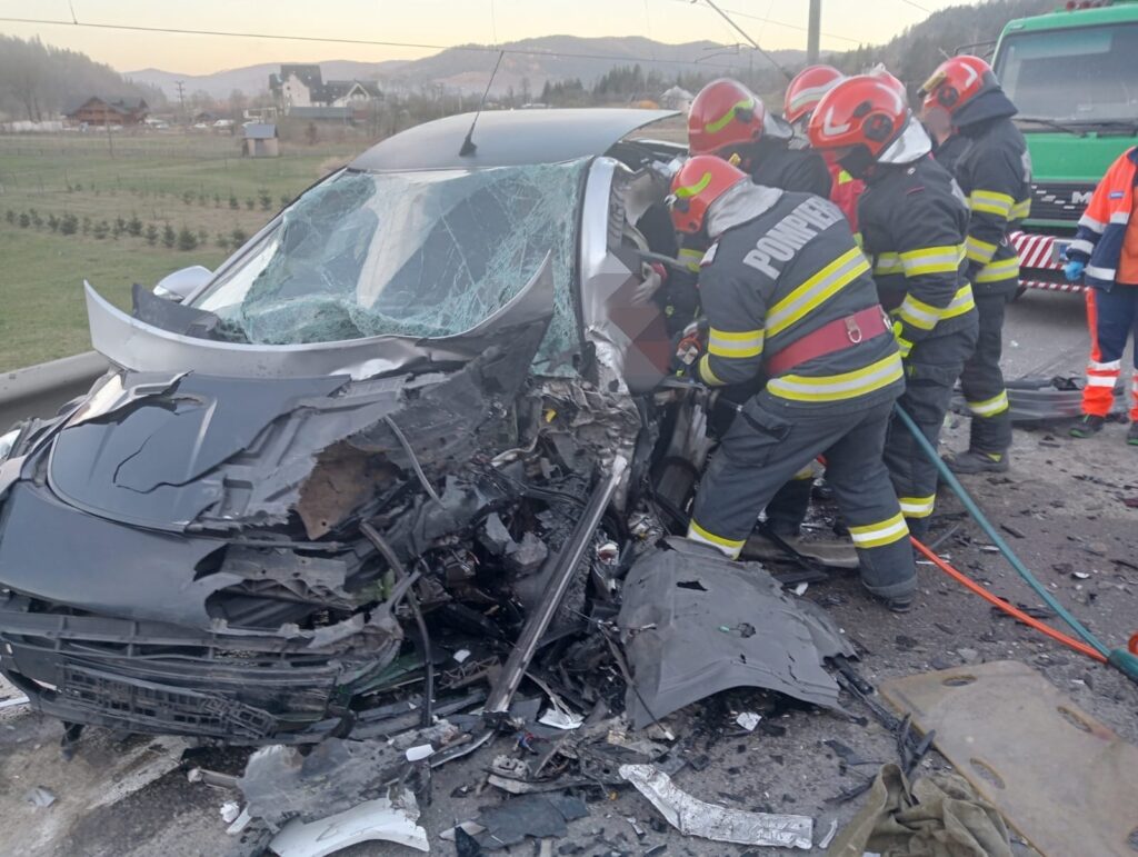La locul accidentului au intervenit pompierii militari cu o autospecială de stingere dotată cu modul pentru descarcerare, două ambulanţe SMURD şi două ambulanţe de la Serviciul de Ambulanţă Judeţean.