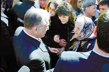 Dupa ce a facut turul de onoare, seful statului a tinut sa stea de vorba cu oamenii veniti in numar destul de mare in Piata Prefecturii. Pentru citeva minute, din rindul multimii s-au auzit strigatele de disperare ale celor saraci si ale somerilor: „Ne mor copiii de foame, domnule presedinte! „ Nu mai avem ce pune pe masa!“, „Vrem serviciu!“