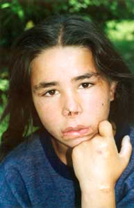 „M-a muscat. De gura, de nas, de ureche. Pe miini si pe fata m-a ars, iar in cap m-a taiat cu cutitul. Si ce mi-a facut mie le-a facut si fratilor mei mai mici. Pentru ca nu faceam treaba, pentru ca nu eram cuminte, asa zicea. Mama mea m-a desfigurat, m-a distrus. M-a chinuit, m-a batut…“