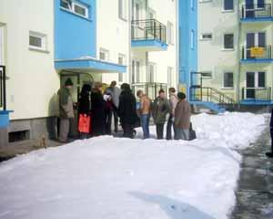 Cele 77 de familii care au avut privilegiul de a se muta in casa noua au venit ieri insotite de rude si prieteni, inainte de ora anuntata pentru deschidere. Inaugurarea a fost bine pusa la punct de angajatii Serviciului de Fond Locativ din cadrul primariei, de altfel singurii reprezentanti ai municipalitatii care i-au condus pe chiriasi in locuintele repartizate. Pentru a nu se crea imbulzeala, acestia au fost asezati in ordine, fiecaruia oferindu-i-se cheia de la apartament sau garsoniera.