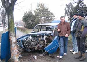 „Eram la scoala si, fiind pauza, ne-am gindit sa mergem in oras sa ne cumparam mincare, in preajma liceului nefiind nici un magazin. Aveam timp sa ne intoarcem. Din pacate, ne-am oprit intr-un pom. A trecut unul cu masina prin fata noastra. Eu am pus repede frina, dar am intrat in pom“, a spus soferul Ovidiu Petrisor Preda, posesor al permisului auto de numai trei luni.