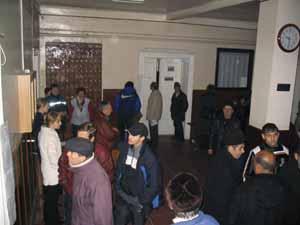 Din cauza beznei care cuprinsese holul tribunalului, justitiabilii se foiau dintr-o parte in alta, injurindu-i de mama focului pe „aia de la RENEL“, considerati vinovati pentru pana de curent. Intr-un colt s-a aprins deodata o lumina, insa nu era vorba decit despre un cetatean care, intimplator, avea la el o lanterna, pe care o aprinsese ca sa citeasca lista proceselor de la Sectia Civila. Linga un avizier, doi tineri se tineau in brate, „furindu-si“ din cind in cind cite un sarut, la adapostul intunericului. Linga ei, o batrina care-si pazea cu mare atentie sacosa voluminoasa, pe la coltul careia se itea din cind in cind capul unei gaini, ii explica de zor lui „domnu’ avocat“ cu mapa de piele cum sta treaba cu „pamintu’ meu pe care nu vrea sa mi-l dea primaru’“. Vinzoleala din intuneric, care dadea mari batai de cap politistilor, a luat sfirsit cu citeva minute inainte de ora 10.00, cind becurile din holul tribunalului s-au aprins.