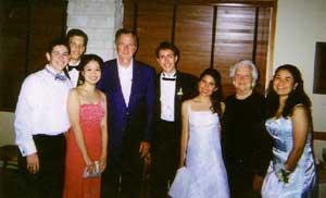 Locuiesc la „o aruncatura de bat“ de familia George H. Bush Sr. Fotografia este facuta la un restaurant brazilian din Houston, dupa cina. Fetitele mele sint in stinga si in dreapta Barbarei Bush, sotia fostului presedinte, care le iubeste. Nu ma laud ca as fi prieten cu Excelenta Sa, dar am discutat situatia casei si mi-a spus ca ma va sustine la Strasbourg sa mi se dea cel putin un apartament cu doua camere.