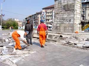Lucrarile de reamenajare a centrului Craiovei incepute saptamâna trecuta au continuat si ieri fara nici un fel de probleme din partea primariei care inca nu le-a comandat, desi a semnat contractul de executie, sau a executantului, SC UTI International.
