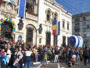 Inca de duminica noapte pe strazile Craiovei au „defilat“ zeci de saci imensi de baloane colorate care se indreptau spre centru, unde se puneau la punct ultimele detalii pentru „deschiderea oficiala“. Pâna ieri-dimineata centrul sobru al Cetatii Baniei a fost impodobit de ghirlande de baloane colorate, semn ca petrecerea este pe punctul de a incepe. Si au inceput sa apara „actorii“ – elevi ai liceelor din Craiova care repetau diferite dansuri, Ansamblul folcloric si taraful „Maria Tanase“ si fanfara militara, iar lânga cordoanele de jandarmi s-au strâns câtiva „curiosi“ care acum intelegeau de ce circulatia a fost oprita si au ajuns la serviciu cu zeci de minute intârziere.