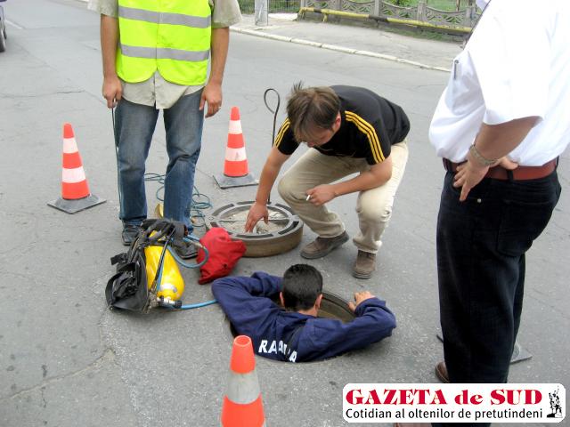 Gaura apărută luni în asfaltul de la intersecţia străzilor Madona Dudu şi Matei Basarab ar fi provocată de un foraj abandonat în urmă cu mai mulţi ani de firma Cimoret SA Craiova, care a amenajat o canalizare pentru viitorul sediu al Inspectoratului Şcolar Judeţean Dolj. Potrivit reprezentanţilor Companiei de Apă Oltenia, care au vizitat ieri magistrala colectoare a apelor menajere din intersecţie, în zona cu pricina există sub carosabil un gol în care se pot observa urme ale unei forări. „Pe lângă canalizarea propriu-zisă a sediului inspectoratului, şi aceasta colmatată, am mai descoperit săpături care vin tot dinspre sediul Inspectoratului Şcolar Judeţean Dolj. Colegii mei au confirmat că, în urmă cu şase-şapte ani, prima încercare de construire a acestui canal a eşuat din pricină că forajul a nimerit într-o canalizare de agent termic. Constructorii de la acea vreme – nu ştim în acest moment cine este titularul autorizaţiei de construire pentru că noi nu am semnat recepţia acestei canalizări – au reluat forarea, însă nu au mai astupat vechile săpături conform normativelor. Între timp, asfaltul nesusţinut s-a lăsat“, a declarat directorul Companiei de Apă Oltenia, Constantin Stamatoiu. Şeful lucrărilor de la sediul Inspectoratului Şcolar Judeţean Dolj, Dinu Popescu, a confirmat că o substructură a Cimoret SA a făcut acel canal, probabil în anul 2000, însă a negat orice relaţie între reţeaua cu pricina şi canalele Companiei de Apă Oltenia, sistemul de termoficare ori groapa din mijlocul străzii.