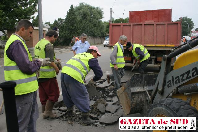În jurul orei 13.00, la faţa locului şi-a făcut apariţia un echipaj al Companiei de Apă Oltenia (CAO) SA, care a încercat să identifice motivul prăbuşirii. „Păi, cei de la Domarcons, care au pus asfaltul, sunt de vină. Nu l-au lipit bine şi au avut loc infiltraţii de apă, prin urmare, s-a prăbuşit. Acum vom sparge o porţiune ceva mai mare, vom lua asfaltul şi ne apucăm să compactăm terenul pentru a se putea circula“, a menţionat şeful echipei de la CAO SA. La scurt timp de la începerea lucrărilor, a venit în inspecţie şi directorul companiei, Constantin Stamatoiu, care i-a avertizat pe muncitori să semnalizeze ca la carte lucrarea, pentru a evita producerea de incidente. „Lucrarea a fost a noastră. Acum trei luni am intervenit pentru a separa de branşamentul unităţii militare din zonă un cetăţean. Am încheiat contract cu cei de la Domarcons să realizeze asfaltarea. Nu pot să dau vina pe cineva pentru că şi ai noştri au fost de vină deoarece nu au făcut compactarea şi consolidarea aşa cum trebuia“, a menţionat Stamatoiu.