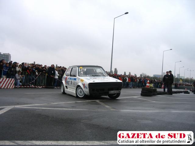 Evenimentul s-a desfăşurat pe un circuit amenajat în parcarea Selgros, unde atmosfera a fost asigurată de sunetul motoarelor turate la maximum şi de scârţâitul anvelopelor. Vremea urâtă nu a reuşit să sperie publicul de câteva sute de craioveni, care au rezistat cu stoicism frigului. 40 de participanţi, atât din Craiova, cât şi din Bucureşti sau Braşov, au încercat să impresioneze asistenţa prin obţinerea unui timp cât mai bun pe traseul cu multe curbe, delimitat de cauciucuri de protecţie. Pentru a dovedi că sporturile cu motor nu sunt doar pentru bărbaţi, printre concurenţi s-a aflat şi o craioveancă, Raluca, la volanul unui automobil Peugeot. Din prezentare am aflat că are 29 de ani, este pasionată de cursele de maşini şi că a participat la mai multe evenimente de acest gen atât în ţară, cât şi peste hotare.