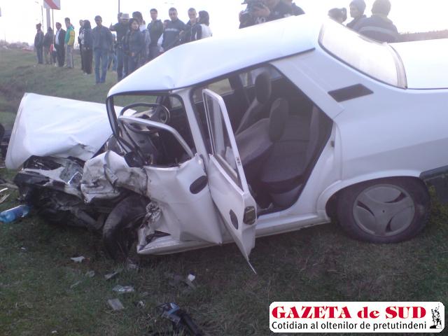 Un grav accident de circulaţie s-a produs la ieri în zona ACH din municipiul Târgu Jiu. Două autoturisme s-au ciocnit violent, iar un al treilea s-a izbit în plin de cele două maşini, în ciuda încercării şoferului de a le evita. Trei persoane au fost rănite, în urma evenimentului rutier, produs din vina unui poliţist aflat în stare de ebrietate. Martorii accidentului au declarat poliţiei că maşina condusă de subofiţerul Sabin Vieru a intrat cu viteză într-o curbă şi a lovit în plin autoturismul Dacia, condus regulamentar de Dumitru Bunoiu, care venea din sens opus. Impactul a fost violent, partea din faţă a maşinii în care se afla Bunoiu fiind grav avariată. Victimele au fost transportate la spital. Echipajul SMURD a avut probleme serioase pentru a-l scoate dintre fiarele contorsioate pe Dumitru Bunoiu. În cele din urmă rănitul a fost scos pe uşa din spate a autoturismului şi trimis cu o ambulanţă la Spitalul Judeţean din Târgu Jiu, unde a fost suspus unei intervenţii chirurgicale. Cercetările continuă. Amănunte în Gazeta de Sud.