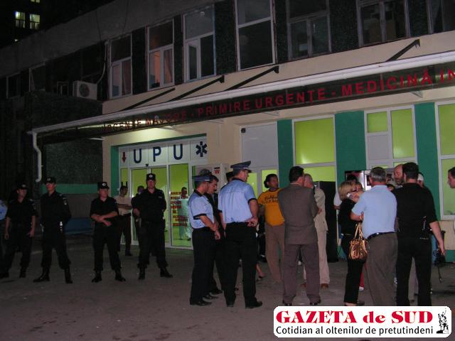 Oamenii legii au intrat în Urgenţă, dar nu vedeau unde este scandalul, deşi ţipetele femeilor rome se auzeau de la poarta spitalului. Au fost conduşi de angajaţii unităţii în camera de gardă şi, când au văzut ce era acolo, au ieşit la fel de repede cum intraseră şi au început să dea telefoane, cerând instrucţiuni. Noroc cu echipajul de jandarmi care a apărut imediat după poliţişti. Statura impunătoare a acestora i-a liniştit imediat pe scandalagii, femeile rome părăsind spitalul fără să mai comenteze. Bărbaţii au ieşit şi ei în urma lor, escortaţi de jandarmi, moment în care medicii şi-au putut vedea liniştiţi de treabă.