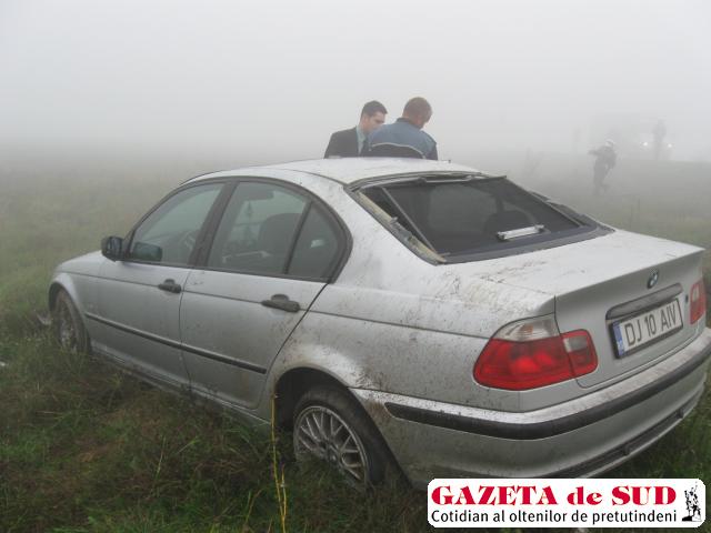 Un bărbat a fost rănit uşor azi dimineaţă în jurul orei 9.00 pe Centura de Nord a Craiovei, după ce autoturismul marca BMW pe care îl conducea a părăsit carosabilul şi s-a oprit în câmp. Poliţiştii de la rutieră, sosiţi imediat la faţa locului, au stabilit că accidentul s-a produs din cauza neadaptării vitezei de mers la condiţiile de drum, ceaţă şi carosabil umed. Amănunte în numărul de mâine al Gazetei de Sud.