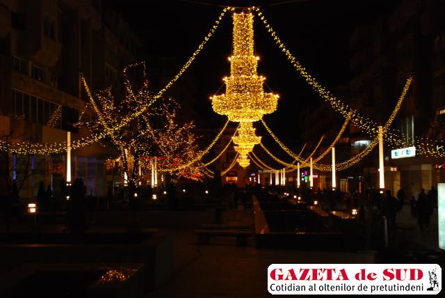Centrul Băniei a fost împodobit de Sărbători. Mii de beculeţe colorate şi sute de ornamente luminoase au fost instalate în English Park şi pe strada Unirii, cel puţin încă pe atât fiind aprinse seara în mai toate părculeţele şi grădinile din Craiova.