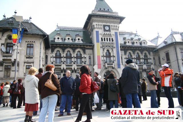 Aproape 300 de sindicalişti afiliaţi la Cartel Alfa, au pichetat astăzi între 11:00 şi 13:00 prefectura judeţului Dolj, pentru a cere renunţarea la Ordonanţa de Urgenţă ce vizează reducerea numărului de sporuri în sistemul bugetar. "Această acţiune este rezultatul politicii duse de Guvern care doreşte desfiinţarea sistemului bugetar prin reduceri salariale masive şi descentralizare", a declarat Iulian Vătau, preşedintele CNS Cartel Alfa, Filiala Dolj, care a precizat că la manifestare au paricipant sindicalişti ai APIA, DADR, Agenţiei de Mediu şi ai Universităţilor din Craiova. Acesta a explicat că, în cazul în care Ministerul Muncii nu va renunţa, în cadrul negocierilor de astăzi cu sindicatele, la propunerea de eliminare a salariilor de merit şi a primelor, pichetarea de astăzi va fi doar începutul unei listei lungi de mişcări sindicale.