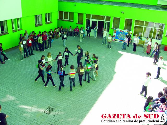 Bucuroşi că ritmul obişnuit al zilelor de cursuri se întrerupe, elevii Centrului Şcolar „Beethoven“ din Craiova au ieşit vineri în curtea din spate a instituţiei, pregătiţi pentru activităţile programate cu ocazia Zilei Europei: un program artistic, întreceri sportive, atelier de lucru.