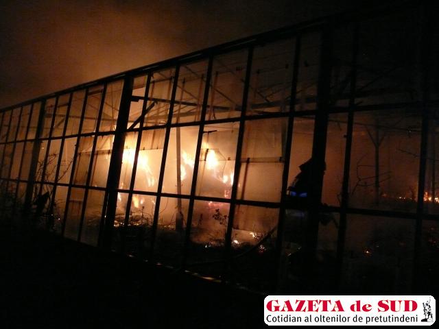 „Am intervenit cu două autospeciale cu apă şi spumă pentru stingerea unui incendiu la fostele sere din comuna Şimian. Focul se manifesta puternic arzând tot nutreţul şi geamurile serei”, a declarat Mihai Viişoreanu, căpitan ISU „Drobeta”.