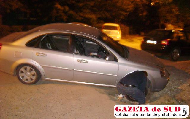 „Lângă blocul nostru se lucrează de o lună. Dimineaţa, când am plecat, erau acolo nişte pietre, moloz şi se lucra. Când am revenit, seara, pământul era nivelat. Totul părea în ordine şi am parcat“. Numai că şoferul autoturismului s-a trezit cu roţile înghiţite de o groapă căscată ca din senin în pământ. Nu mică i-a fost mirarea când s-a trezit deasupra unor conducte despre care habar nu are cărei companii sau regii craiovene aparţin.