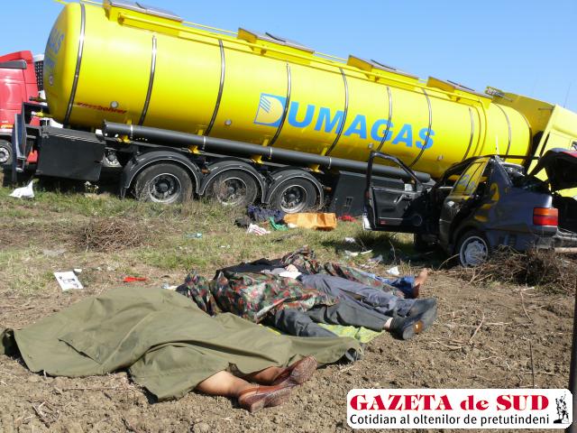 „Nici nu mai ştiu cum s-a întâmplat, cred că a tras de volan prea mult şi venit direct în mine. Am înţeles că sunt patru morţi, nici nu m-am apropiat, nu am putut să evit nimic”, a spus şoferul tirului. Medicii care au sosit la faţa locului cu patru ambulanţe şi un serviciu de descarcerare nu au mai putut face nimic. Pompierii de la Descarcerare au lucrat aproape o oră pentru scoaterea cadavrelor dintre fiarele contorsionate. Amănunte în Gazeta de Sud.