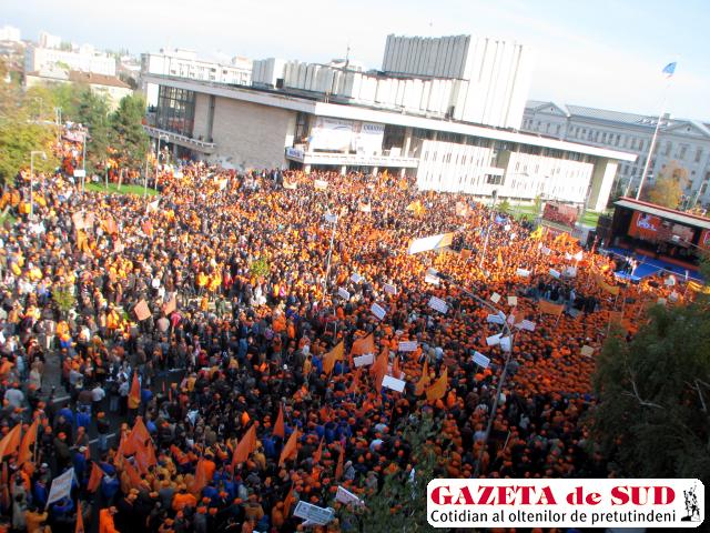 La mitingul electoral organizat de PD-L în Craiova, în faţa Teatrului Naţional „Marin Sorescu“ au venit 40-50.000 de oameni, după cum reiese din declaraţiile reprezentanţilor jandarmeriei. Purtând culorile partidului şi agitând steaguri şi bannere, mulţimea de susţinători a scandat numele preşedintelui Băsescu la sosirea acestuia pe scena pe care se aflau Emil Boc, Radu Berceanu, Elena Udrea, Gheorghe Flutur, Marian Jean Marinescu şi alţi membri marcanţi ai PD-L. Traian Ungureanu şi Antonie Solomon au încălzit mulţimea de susţinători prin discursurile lor înainte de sosirea preşedintelui, Solomon ţinând să amintească faptul că sâmbătă, „pe fieful lui Mircea Dinescu, l-am zdrobit, l-am umilit“. Preşedintele Băsescu a dorit să explice susţinătorilor săi că a acceptat profilul de prim-ministru pe care l-au trasat partidele, dar nu şi numele, deoarece persoana premierului o desemnează numai preşedintele statului. „Au cerut să fie un independent, dar i-au pus şi nume. Păi asta nu se poate. După Constituţie, ei pot să propună cum vor să arate primul-ministru, dar numele îl spune preşedintele. Am ţinut cont de ce voiau ca prim-ministru, un independent, şi atunci am desemnat un independent care să nu fie în cârdăşie nici cu Voiculescu, nici cu Patriciu, nici cu Iliescu, nici cu Hrebenciuc, dar nu le-a convenit. Ei voiau unul pe care să-l poată manipula şi atunci au spus: «Hai, independent, independent, dar să fie şi gospodar, şi cu 80% voturi la alegeri». Le-am spus, «Măi, băieţi, o fi bine cu Johannis, eu nu spun că nu are 80% şi că nu e bun gospodar, dar vă dau eu unul mai bun, pe Liviu Negoiţă, care are tot 80% şi mai multă experienţă – două mandate de parlamentar şi două de primar, într-un sector cu 400.000 de locuitori». Deci, aş spune că încercarea lui Voiculescu, Iliescu, Hrebenciuc, Geoană de a-şi pune un prim-ministru în spatele căruia să-şi vadă de privatizarea Poştei, Regiei Sării, Romgaz, Transgaz nu a reuşit şi nici nu are cum să reuşească“, a afirmat Băsescu.