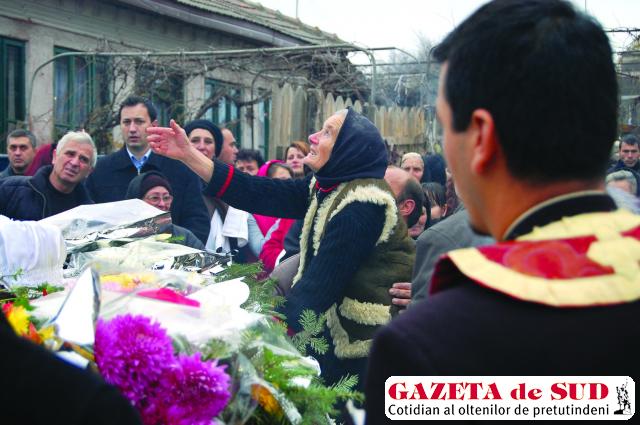 „Dac-aş şti că mor ca mâine,/ Mi-aş face casă de piatră/ Ca moartea să nu răzbată…“. În liniştea locului, din curtea înmărmurită, peste tractorul împodobit cu crizanteme şi trandafiri, goarnele şi vocea cântăreţilor ajung sfredelitor la sufletul prietenilor şi cunoscuţilor, strânşi peste drum de poartă. Se-apropie încet unii de alţii, parc-ar vrea să se-mpotrivească sorţii. „Şi-aş chema fierarii toţi/ Să pună lacăt la porţi/ Cu lanţuri să mă-ngrădească/ Moartea să nu mă găsească“. Cântecul trece purtat de cântăreţi spre uliţele din apropiere, dând de ştire satului că un om s-a stins. Între timp, dincolo de uşa străjuită de foc, preotul se pregăteşte de slujbă. „Un ultim omagiu“, „Nu te vom uita!“. Mesajele din coroanele aranjate pe marginile covorului din remorcă s-au strâns în jurul tabloului din care Flori priveşte mulţimea venită pentru ea.