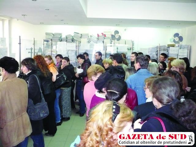 Nebunia s-a declanşat la începutul acestei săptămâni, după ce numărul funcţionarelor de la ghişee a fost redus drastic, ca urmare a aplicării legii privind zilele de lucru neplătite, astfel încât activitatea CAS Dolj a fost aproape dată peste cap. Trimiterea angajaţilor în concediu fără plată a picat cum nu se poate mai rău, la sfârşit de lună, adică exact în momentul în care angajatorii dau buluc la CAS Dolj ca să-şi depună declaraţiile privind obligaţiile la fondul asigurărilor de sănătate.
