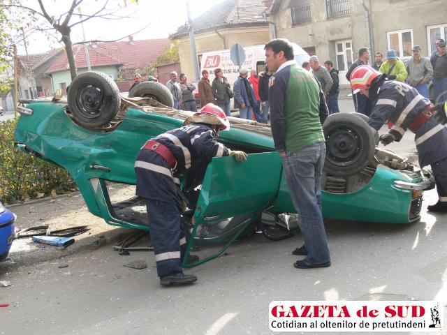 Un grav accident rutier s-a petrecut în această dimineaţă într-o intersecţie din Drobeta Turnu Severin, când şoferul unei autoutilitare nu s-a oprit la indicatorul STOP şi a lovit în plin un autoturism Dacia, care circula regulamentar. În urma impactului, autoturismul Dacia s-a răsturnat şi a lovit o bătrână aflată pe trotuar. Victima a ajuns la spital cu mai multe leziuni. Dacă va fi găsit vinovat, şoferul care nu a oprit la stop, va fi cercetat pentru vătămare corporală.