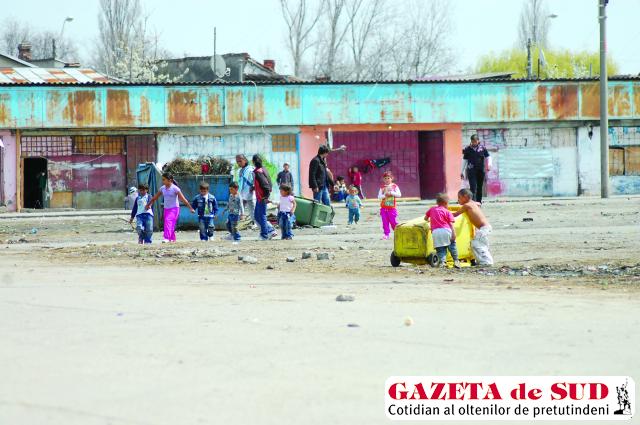 O oală cu nisip în care ard trei, patru lumânărele şi o coroană agăţată de uşă. În apropiere, pe terenul ce aduce a autogară părăsită, în jurul unui container plin cu gunoaie, copiii se joacă fără grijă. Câţiva plimbă un tomberon gol, galben. Îl răstoarnă, intră în el. Din toată comunitatea, trei, patru merg la grădiniţă sau la şcoală. Copilul omorât de câini cu câteva zile în urmă e undeva înăuntru, pe o masă.