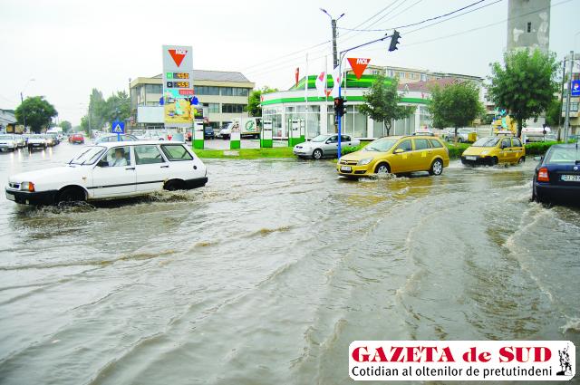 Ploaia torenţială de ieri-dimineaţă, deşi nu a durat prea mult, s-a dovedit din nou peste puterile sistemului de canalizare al municipiului Craiova. Unul dintre „lacurile“ formate ad-hoc pe carosabil s-a ivit, ca de fiecare dată, la intersecţia străzilor Brestei şi Maria Tănase. Adică exact în faţa sediului Companiei de Apă, dovedind cât de bine „păstoreşte“ această instituţie reţelele de apă şi de canalizare din oraş.
