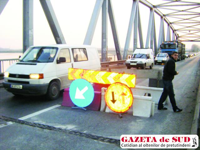 Circulaţia va fi restricţionată mâine pe DN 65. Podul peste Olt va fi închis traficului rutier. O groapă cu diametrul de aproximativ o jumătate de metru a apărut din nou în asfalt pe sensul de mers dinspre Slatina către Slătioara. În prezent, circulaţia pe pod se efectuează, alternativ, pe un singur sens de mers. Drumarii au semnalizat groapa, iar pentru a dirija circulaţia poliţiştii au ieşit în stradă. Muncitorii de la Drumuri Naţionale vor astupa groapa care a apărut în asfalt.  Potrivit lui Vali Gorunescu, şefa Secţiei de Drumuri Naţionale (SDN) Olt, în zonă traficul va fi restricţionat. „Miercuri (mâine – n.r.), traficul pe pod urmează să fie închis timp de şapte ore pentru a se efectua lucrările de reparaţii. Dacă nu va ploua şi temperaturile nu vor scădea sub 5 grade Celsius, lucrările se pot efectua fără probleme“, a explicat Vali Gorunescu. Potrivit acesteia, circulaţia pe pod va fi închisă şapte ore, în intervalul 10.00-17.00. Traficul rutier se va face pe rute ocolitoare: Slatina – Curtişoara – Teslui – Mamura – Strejeşti – Găneasa sau pe barajul de la Slătioara.  Reprezentanţii SDN Olt speră ca până vineri podul peste Olt să fie redat circulaţiei. „După ce groapa va fi astupată, miercuri seară, după ora 17.00, se va putea circula pe pod, tot pe un singur sens, alternativ, iar de vineri circulaţia ar putea fi redeschisă pe ambele sensuri de mers“, a precizat Vali Gorunescu.