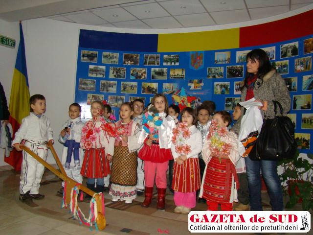 Copii au intrat în unitate colindând “Deschide uşa creştine!” şi având asupra lor sorcove şi aranjamente de iarnă confecţionate manual de ei.
