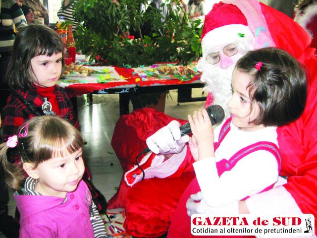 Cu o săptămână înainte de Crăciun, vineri, Moşul i-a vizitat pe copiii angajaţilor Inspectoratului Teritorial de Muncă (ITM) Dolj. Jovial şi darnic, cum îi este felul, Moş Crăciun a venit încărcat de cadouri şi dulciuri pe care le-a împărţit celor prezenţi, nu înainte de a asculta poeziile pregătite din timp pentru acest eveniment. „Am încercat să primim Sărbătorile de iarnă cu o bucurie pentru cei mici, şi nu numai. Am reuşit să ne organizăm şi să ne felicităm colegii şi pe copiii acestora“, a declarat Cătălin Tiberius Mohora, inspector-şef la ITM Dolj. Acesta a explicat că de darurile Moşului s-au bucurat peste 30 de copii cu vârste cuprinse între câteva luni şi 15 ani ai actualilor şi foştilor salariaţi, la care se adaugă câteva cazuri sociale. „Pe Moş Crăciun l-am convins să vină cu sufletul şi cu gânduri bune şi spun asta pentru că am simţit o implicare din partea tuturor colegilor, pentru că tot ce se întâmplă aici este datorită muncii şi contribuţiei fiecăruia dintre noi. Acesta este al zecelea an de când sărbătorim acest moment al anului şi avem un Moş care ne iubeşte tare mult şi care de cinci ani nu ne ocoleşte niciodată“, a adăugat Cătălin Tiberius Mohora.