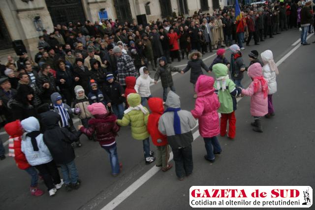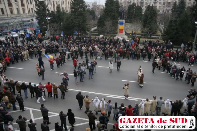 Sarbatoarea Unirii mici a decurs fara incidente la Craiova. Circa 400 de persoane, printre care copii, revolutionari si protestatari care au scandat in centrul orasului in ultimele zile au incins hore si au chiuit de veselie, alaturi de oficialitati. Dupa terminarea horelor din fata primariei, protestatarii s-au adunat in Piata Mihai Viteazul si au inceput sa scandeze lozinci impotriva presedintelui si a guvernului. Detalii in Gazeta de Sud de maine.