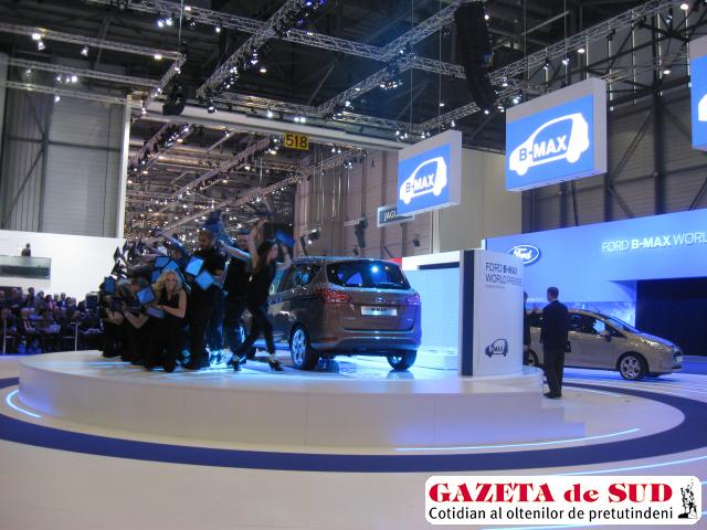 În această dimineaţă Ford B-Max a fost lansat la Salonul Auto de la Geneva, în prezenţa preşedintelui Ford Motor Company, Alan Mulally, şi a preşedintelui Ford Europa, Stephen Odell. Cinci maşini Ford B-Max fabricate la Craiova şi-au făcut aparitia la standul Ford organizat la Geneva, "defilând" prin faţa celor prezenţi, într-un spectacol inedit de lumini şi sunete. Oficialii Ford au spus că B-Max este o maşină compactă, destinată familiilor, şi care va avea un consum redus de combustibil şi emisii scăzute de CO2, datorită motorului EcoBoost cu care va fi dotată, şi acesta fabricat tot la Craiova. Principala caracteristică a acestui model Ford este lipsă stâlpului central, acesta fiind încorporat în uşi. Autovehiculul va fi dotat şi în România Sistemul SYNC