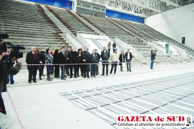 Primarul Antonie Solomon, însoţit de ziarişti, a mers ieri în „control“ la Sala Polivalentă din Craiova. Le-a arătat jurnaliştilor că lucrările din exterior sunt aproape gata – de la alei şi până la scările placate cu marmură – iar în interior s-a dat drumul la căldură – tocmai acum, când s-a încălzit şi afară! Se lucra în interior la zugrăveli şi fusese montată instalaţia de încălzire din zona de joc, urmând ca, în viitorul apropiat, peste ţevi să fie montat parchetul special. Nu exista, însă, nici un element de mobilier. „S-a licitat la Bucureşti, la Compania Naţională de Investiţii, mobilierul, adică scaunele şi tot ce mai înseamnă asta. N-au fost contestaţii, s-a semnat contractul, iar firma care a câştigat are obligaţia să le aducă la Craiova în 30 de zile“, a explicat primarul Antonie Solomon.