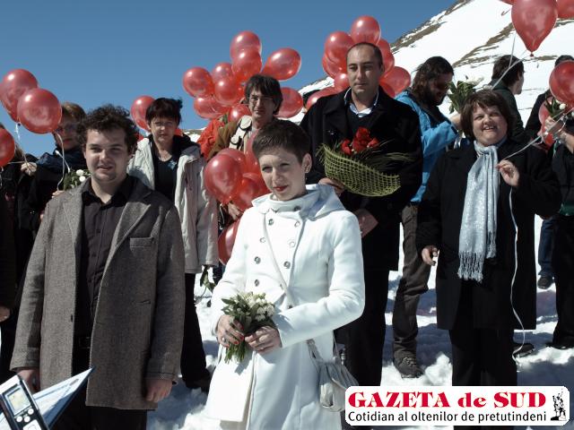 Matei și Mădălina, doi tineri artiști, și-au unit ieri destinele pe platoul de lângă Vârful Păpușa, din Rânca-Gorj. La o altitudine de 1.900 de metri, Matei și Mădălina și-au promis că se vor iubi mereu și că își vor fi alături toată viața. La ceremonie au participat familiile tinerilor, prietenii, dar și câțiva turiști curioși. Primarul din Baia de Fier, Constantin Mihuţescu, a fost cel care a oficiat cununia, iar naşi le-au fost actorul Pompiliu Ciochia (actor la Teatrul Dramatic Elvira Godeanu din Târgu-Jiu n.r.) și soția sa, Mihaela. ”Este primul cuplu care a ales să se cunune cu aproape 2.000 de metri mai aproape de Dumnezeu! Este o premieră pentru stațiunea montană Rânca, ne-am bucurat foarte mult că cei doi tineri frumoși și talentați au ales să se căsătorească aici. Le-am sugerat ca botezul primului prunc să îl facă la Peștera Muierii. Să sperăm că și alți tineri le vor urma exemplul și să aleagă să se căsătorească aici. Este cu adevărat special”, a spus Constantin Mihuțescu, primarul comunei Baia de Fier. Aceasta a fost prima cununie civilă oficiată la Rânca.
