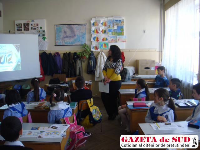 Specialiştii Administrației Bazinale de Apă (ABA) Jiu au susținut azi o lecție deschisă elevilor clasei a III-a C ai Școlii nr. 36, „Gheorghe Bibescu“ din Craiova, cu ocazia Zilei Mondiale a Apei. Elevii din clasa institutorului Lucia Ciucu au aflat cu această ocazie cât de multă apă consumă oamenii în fiecare zi şi cum își pot schimba dieta pentru a reduce acest consum. Li s-a explicat totodată ce înseamnă consumul de apă pentru producerea alimentelor şi care este conţinutul virtual de apă al unor produse alimentare – orez, cartofi, ouă, lapte, brânză, carne.