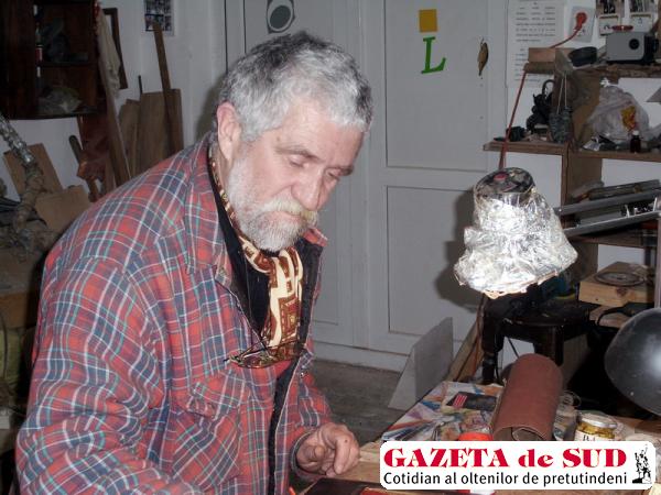 V.N. Trei întrebări deodată! S-o luăm de la coadă… Nu a calului, ci a întrebării. Deocamdată, expoziţia asta de la Muzeul de Artă din Târgu Jiu o las aici un an sau cât o fi interes. Ea, expoziţia, se află la muzeu într-o magazie. Normal ar fi trebuit să se numească „Praful din atelier“, dar nu i-am pus nici un titlu acestei expoziţii. Eu m-am mutat cu atelierul şi aceste lucrări – pe care le-am expus acum – le-am dus într-o magazie şi aşa a ieşit expoziţia. Am deschis-o pe 7 martie… Era cadoul meu pentru toate fetele frumoase…