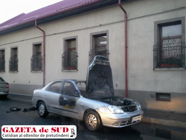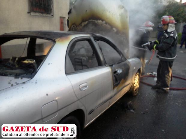 Un autoturism aparţiând unei femei din Craiova, Maura M., a luat foc, în această dimineaţă, pe strada Miron Costin din municipiu. Detaşamentul 1 Pompieri Craiova a intervenit cu două autospecile de lucru cu apă şi spumă pentru stingerea incendiului, potrivit unui comunicat al Inspectoratului pentru Situaţii de Urgenţă (ISU) Dolj. La sosirea echipajelor de intervenţie, incendiul se manifesta cu flacără în interiorul autoturismului, cu posibilitatea de propagare la acoperişul casei învecinate. Autoturismul a ars în proporţie de 70%, iar potrivit pompierilor maşina a fost incendiată de o persoană rămasă neidentificată.