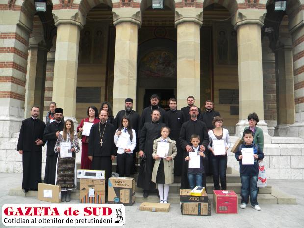 Catedrala mitropolitană „Sfântul Dumitru” din Craiova a găzduit astăzi (vineri, 12 octombrie) festivitatea de premiere în cadrul Concursului naţional de creaţie literară „Şcoala din tinda bisericii”, faza pe Arhiepiscopia Craiovei (judeţele Dolj şi Gorj), organizat prin Biroul de învăţământ, activităţi cu tineretul şi catehizare. Astfel, în urma deliberării, juriul a ales din cele 54 de lucrări înscrise în concurs, nouă câştigători pe secţiunile Literară, Artistică şi Multimedia, după cum urmează: Mihnea Cristian Stancu, Diana Ştefania Croicu şi Bianca Sîbu – locul I, Rodica Constantin, Răzvan Ciort şi Camelia Volitiru – locul II, Alexandra Catană, Ana-Smaranda Ruşinaru şi Elvira Chibzuloiu – locul III. Tinerii au fost premiaţi cu laptopuri, tablete şi desktopuri, oferite de Patriarhia Română, în parteneriat cu Organizaţia World Vision, în cadrul proiectului catehetic „Alege şcoala!”. „Biserica a fost dintotdeauna strâns legată de scoală iar şcoala a fost produsul Bisericii. Dacă aici au învăţat cărturari, caligrafi şi muzicieni deosebiţi, este rolul Bisericii, al dascălilor care au fost înaintea noastră. De aceea niciodată să nu uităm să îi pomenim pe înaintaşii noştri şi să rugăm pe Bunul Dumnezeu să înmulţească talantul pe care vi l-a daruit. Aceste premii sunt o recunoaştere a valorilor pe care le aveţi de acum şi care cu siguranţă se vor materializa mai târziu în lucrări care să dăinuiască şi să ne aducă aminte că aici, din Şcoala din tinda Bisericii, aţi pornit către afirmare în viaţă”, le-a spus elevilor părintele Vladimir Dărângă, ecleziarhul Catedralei mitropolitane „Sfântul Dumitru” din Craiova.