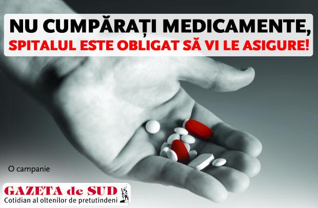 Gazeta de Sud demarează o campanie de conştientizare a persoanelor internate în spital în privinţa drepturilor pe care le au, conform legislaţiei în vigoare. Pacienţii au dreptul să ştie că nu sunt obligaţi să cumpere medicamente şi materiale sanitare pe perioada internării, asigurarea lor căzând în sarcina exclusivă a spitalului. Dacă, totuşi, aţi plătit pentru medicamente sau pentru efectuarea de analize în spital, atunci nu uitaţi un lucru: spitalul trebuie să vă dea banii înapoi!