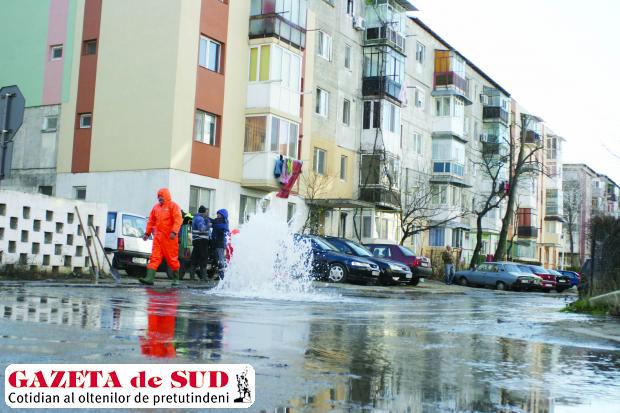 Verificarea anuală a hidranţilor, acţiune a angajaţilor Companiei de Apă Oltenia (CAO) împreună cu cadrele ISU Dolj, care s-a desfăşurat ieri în cartierul craiovean Craioviţa, s-a transformat într-un adevărat dezastru. În urma manevrelor efectuate de angajaţii CAO, secondaţi de cadrele ISU, inspecţia unui hidrant de pe strada Elena Farago s-a soldat cu o avarie de proporţii. Din această cauză, sute de craioveni riscau să rămână fără apă potabilă la robinet. „S-a făcut verificarea anuală a hidranţilor de către angajaţii noştri şi reprezentanţii ISU Dolj. În urma unor manevre, un hidrant situat pe strada Elena Farago a cedat probabil din cauza ruginii, a materialului prost din care este confecţionat şi s-a produs o avarie. Oamenii noştri sunt acolo şi încearcă să remedieze incidentul. Să sperăm că nu vom opri apa în cartier“, a precizat Constantin Mitriţă, directorul CAO.