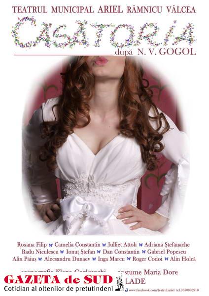 Comedia „Căsătoria”, după N.V. Gogol, regia Aurel Palade, scenografia Elena Cozlovschi, costume Maria Dore, are loc în data de 17 martie 2013, ora 19.00, la sala Cinematograful Ostroveni.