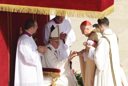 Pontificatul argentinianului Jorge Mario Bergoglio, de 76 de ani, a început oficial astăzi, odată cu primirea de către acesta a însemnelor papale – inelul sfântului Petru şi paliul papal, informează NewsIn. În interiorul bazilicii Sfântul Petru s-a desfăşurat slujba solemnă de începere a pontificatului lui Francisc, cel de-al 266-lea papă.