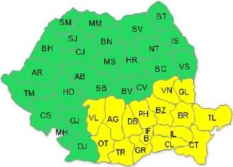 Administraţia Naţională de Meteorologie a em,is o nouă avertizare meteorologică de Cod Galben de ninsoare şi vânt pentru estul Olteniei, Muntenia, Dobrogea şi sudul Moldovei. Atenţionarea este valabilă astăzi între până la ora 20.00.
