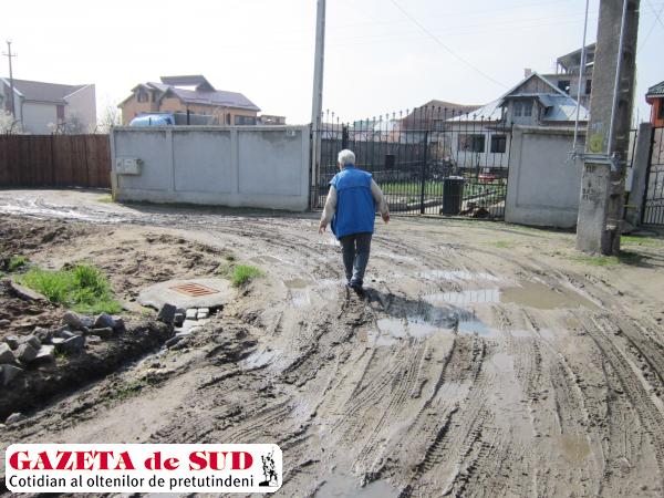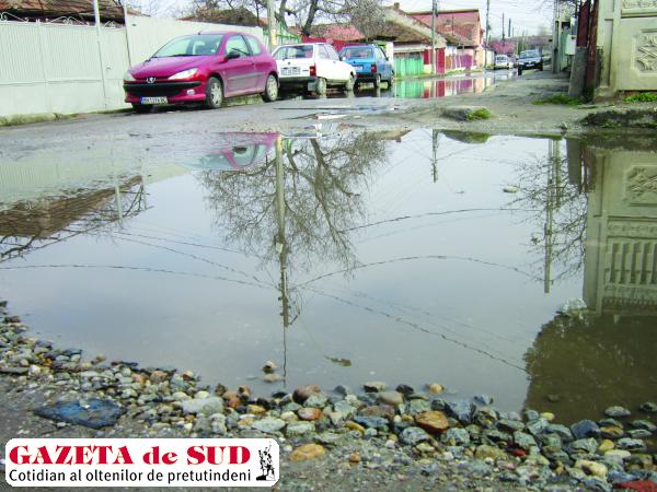 Însă, în alte zone, cum ar fi strada Poienii din cartierul craiovean Catargiu, nici măcar asfalt nu este. Constantin Ungureanu, supărat foc, mărturiseşte că are curtea plină de apă de fiecare dată când plouă. „Plăteşti apa pluvială, dar nu are unde să se ducă. În fiecare zi scot apă din curte cu mătura“, îşi varsă bărbatul amarul. Tot el spune că strada ar apărea în registre ca fiind pietruită. Oamenii nici nu cer altceva; nu-şi doresc asfalt, ci doar o stradă pietruită. „Să pună pietriş! Ni-l luăm de la Jiu, ni-l dă Dumnezeu pe degeaba!“, completează Constantin Ungureanu, mâhnit şi că locatarii trebuie să-şi trimită copiii „la oraş“ în astfel de condiţii: „Avem şi noi copii care merg la şcoală, se duc cu pantofii plini de noroi!“.