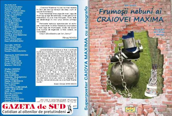 Începând de mâine şi până la sfârşitul săptămânii, Radio Sud lansează un concurs pe teme fotbalistice, iar câştigătorii vor primi câte o carte, cu autograful autorului, cuprinzând istoria Universităţii Craiova. Este vorba de ediţia a doua a volumului „Frumoşii nebuni ai Craiovei Maxima”, scris de ziaristul Ion Jianu (Gazeta de Sud), volum de aproape 400 de pagini color, care include şi un poster cu autografele jucătorilor Craiovei Maxima.