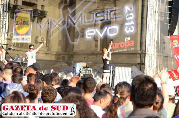 Craiovenii au venit în număr mare la întâlnirea cu artiştii români care au evoluat pe scena Mix Music Evo 2013 din Piaţa „Mihai Viteazul”. Asistenţa numeroasă a putut asculta şi dansa pe acordurile celor mai noi piese, dar şi a celor devenite hituri, purtând semnătura Crush & Alexandra, DeepCentral, Proconsul, Alin Călinescu sau Andreea Bălan care a adus câte ceva din culoare şi atmosfera Carnavalului de la Rio în cadrul celui mai nou proiect al său, Carnaval Show-ul. Nu a lipsit de la întâlnirea cu publicul craiovean nici Petrişor Ruge, care a surprins asistenţa cu un incediar număr de dans. Surprizele, premiile din partea organizatorilor au ţinut publicul conectat la distracție. Cei mai înfocaţi admiratori ai artiştilor români prezenţi la Craiova au putut vizita şi “Cortul artiştilor” de unde şi-au putut achiziţiona obiecte pe care erau zugrăvite imagini cu interpretului preferat. Distracţia va continua şi duminică, 16 iunie, de la ora 17:00, cu alţi artişti în vogă, cu premii şi surprize dar şi cu o demostraţie culinară.