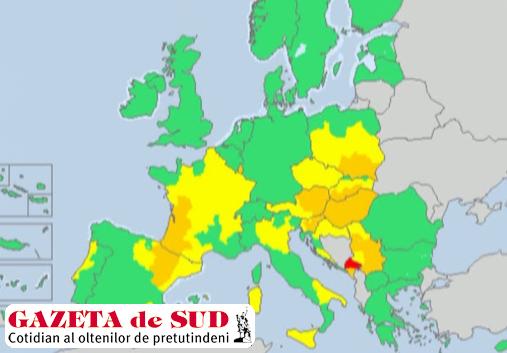 Nu doar România este afectată, astăzi, de caniculă. Potrivit site-ului realitatea.net, temperaturi foarte ridicate se înregistrează în mai multe ţări europene, în special din sud-estul continentului. De pildă, în Muntenegru este cod Roşu de caniculă, în timp ce în Ungaria, Slovacia, Slovenia, Polonia, Letonia şi Austria este cod portocaliu. Meteorologii au emis un cod galben de caniculă în Cehia, Bosnia-Herţegovia, Macedonia şi Italia. În toate aceste ţări, temperaturile vor trece de 35 de grade Celsius. În schimb, în vestul Europei vor fi furtuni şi ploi puternice, însoţite de grindină: vorbim despre Franţa, Germania, Olanda, Belgia şi Elveţia.