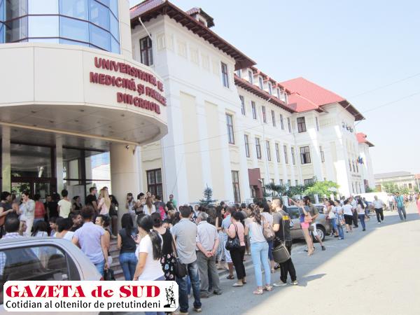 Universitatea de Medicină şi Farmacie din Craiova organizează pe 19 octombrie, începând cu ora 10.00, simularea examenului naţional de rezidenţiat. Înscrierile se fac online pe site-ul universităţii. „Ultima zi de înscrieri este astăzi. Până în prezent, sunt 130 de candidaţi, absolvenţi ai Universităţii de Medicină şi Farmacie din Craiova, promoţia 2012 – 2013, care a susţinut lucrarea de licenţă în iulie anul acesta. Pot participa însă şi studenţi din anul VI de studiu“, a precizat Cristina Gofiţa, preşedinta Societăţii Studenţilor Medicinişti din Craiova, care s-a ocupat de organizarea concursului.